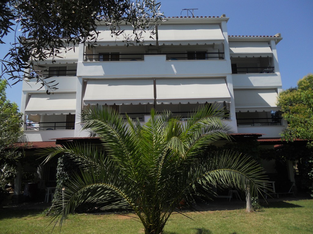 Κάθε διαμέρισμα διαθέτει μπαλκόνι με τέντες και με θέα τη θάλασσα και την καταπράσινη γύρω περιοχή γεμάτη με πεύκα και ελιές.