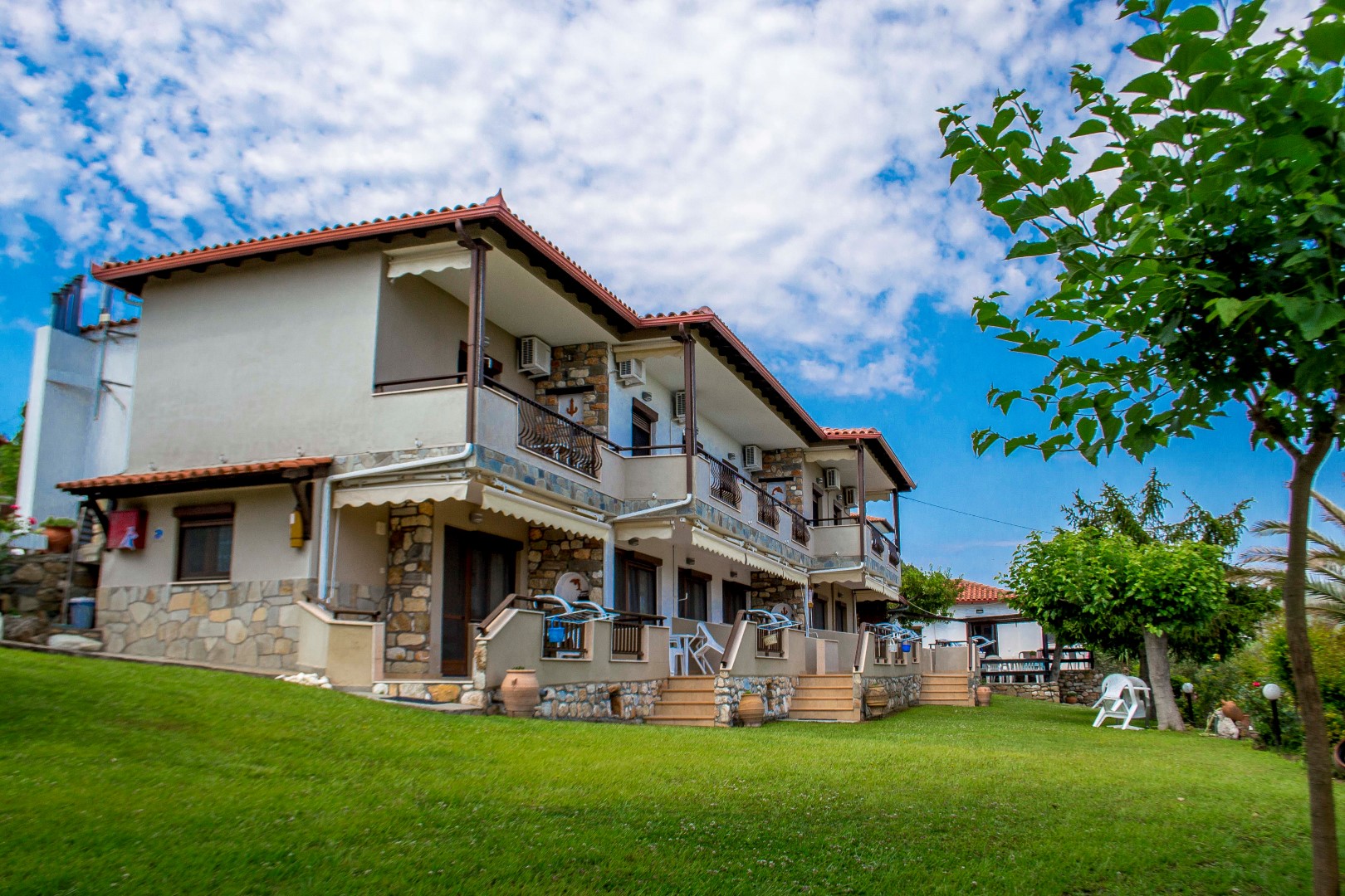 Tο Aggelina Studios, είναι μια οικογενειακή επιχείρηση που βρίσκεται στην μαγευτική Βουρβουρού, μια τοποθεσία γύρω στα 100 χλμ απόσταση από Θεσσαλονίκη, σε ένα μαγευτικο καταπρασινο κηπο πέντε στρεμμάτων αποτελούμενο από ελαιόδεντρα,πεύκα,και φοίνικες